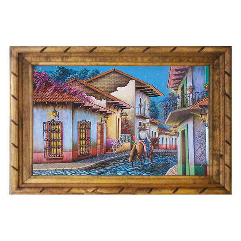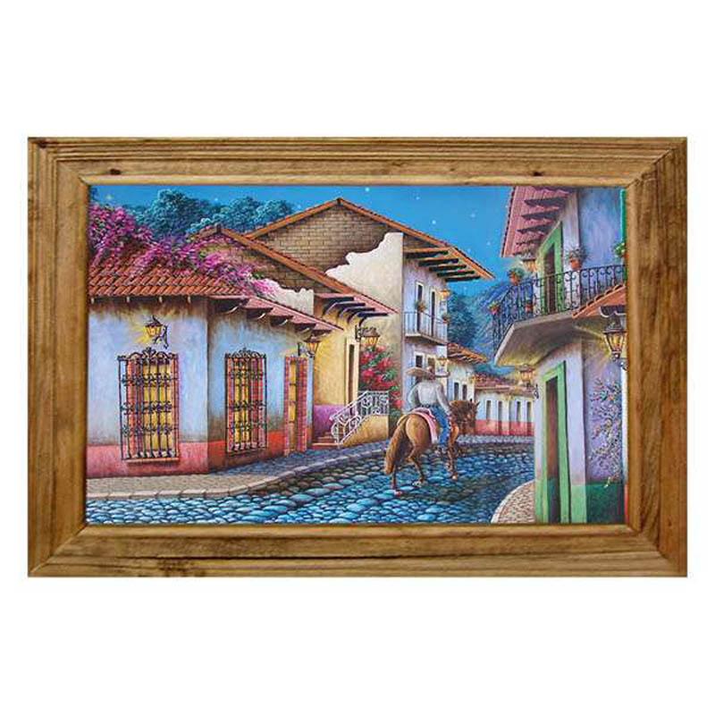 Autenticos cuadros pientados a mano con escenas mexicanas de un jinete montando su cabllo, y paseando por las calles del pueblo. Cada cuadro es hecho de manera unica y personal, lo que da un valor agregado.
