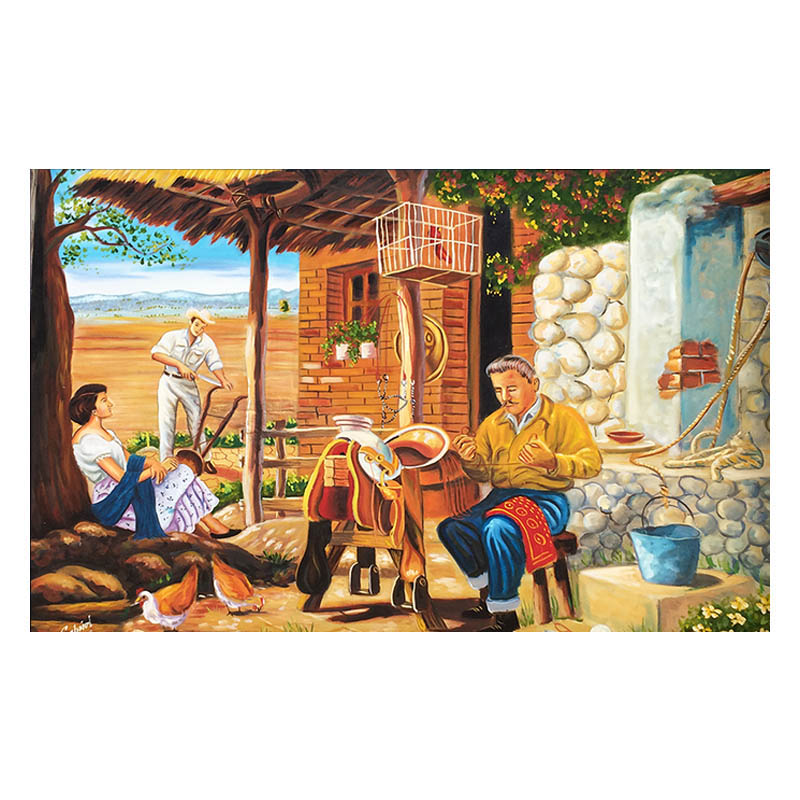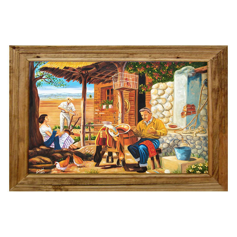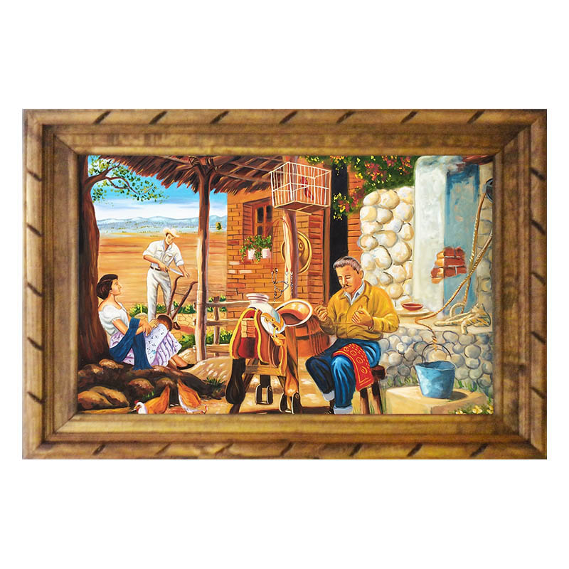 Cuadro pintado a mano por artesanos mexicanos bajo la tecnica de Oleo, que es una obra realizada con pinturas obtenidas a partir de la disolucion de pigmentos en una mezcla de aceite, pintada sobre lienzo.