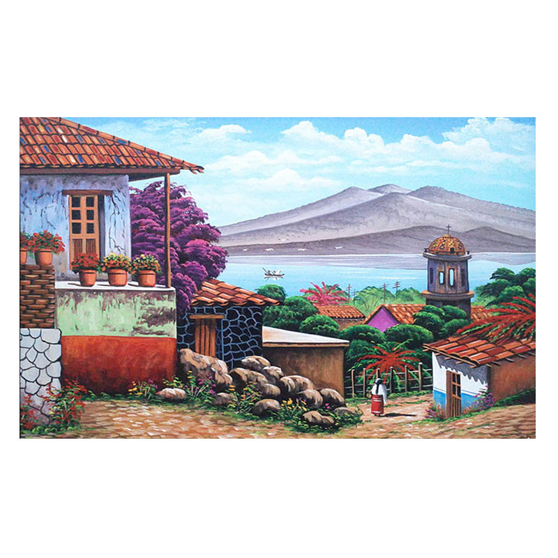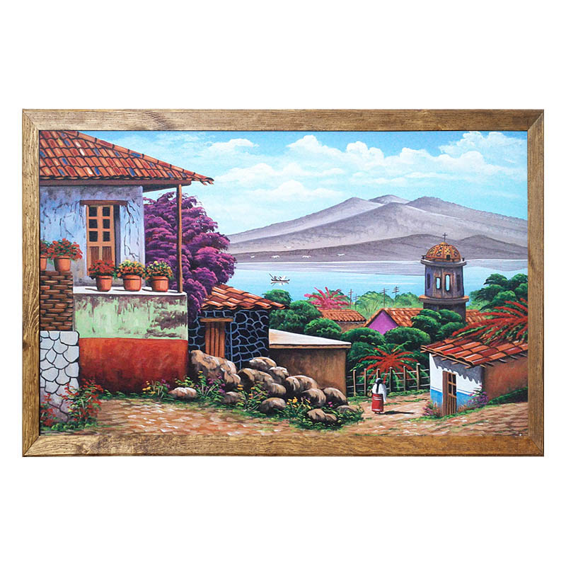 Cuadro pintado a mano por artesanos mexicanos bajo la tecnica de Oleo, que es una obra realizada con pinturas obtenidas a partir de la disolucion de pigmentos en una mezcla de aceite, pintada sobre lienzo.