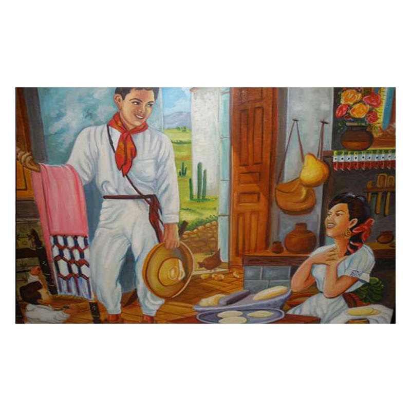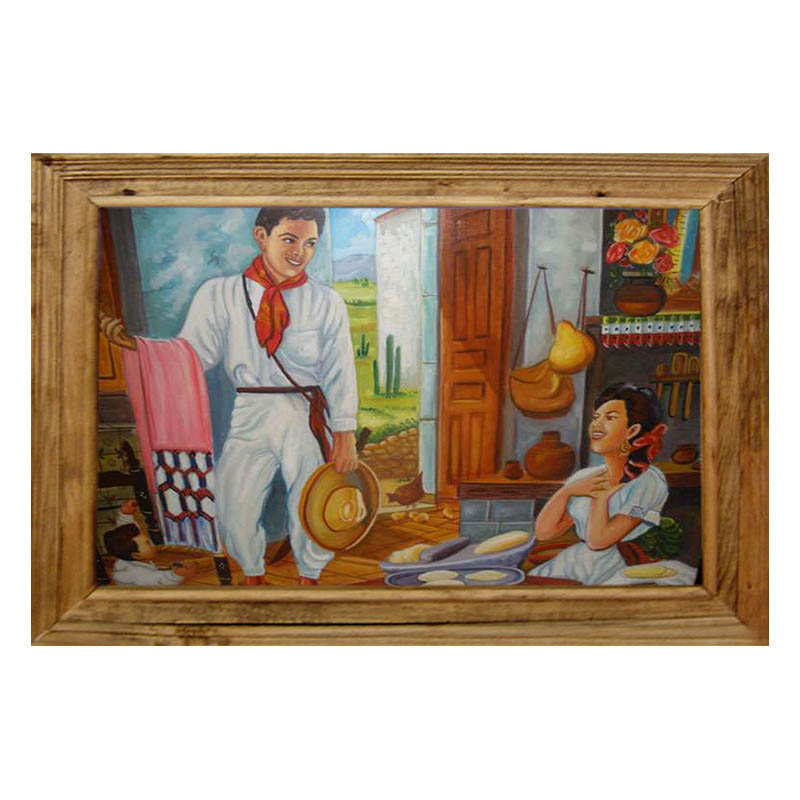 Cuadro pintado a mano por artesanos mexicanos bajo la tecnica de Oleo, que es una obra realizada con pinturas obtenidas a partir de la disolucion de pigmentos en una mezcla de aceite, pintada sobre lienzo.