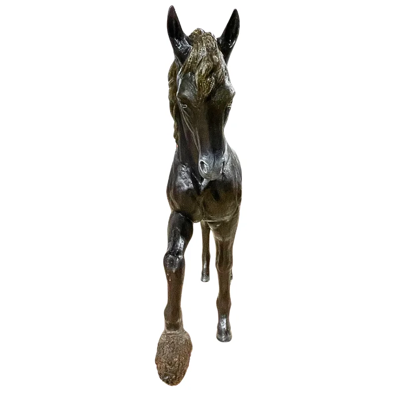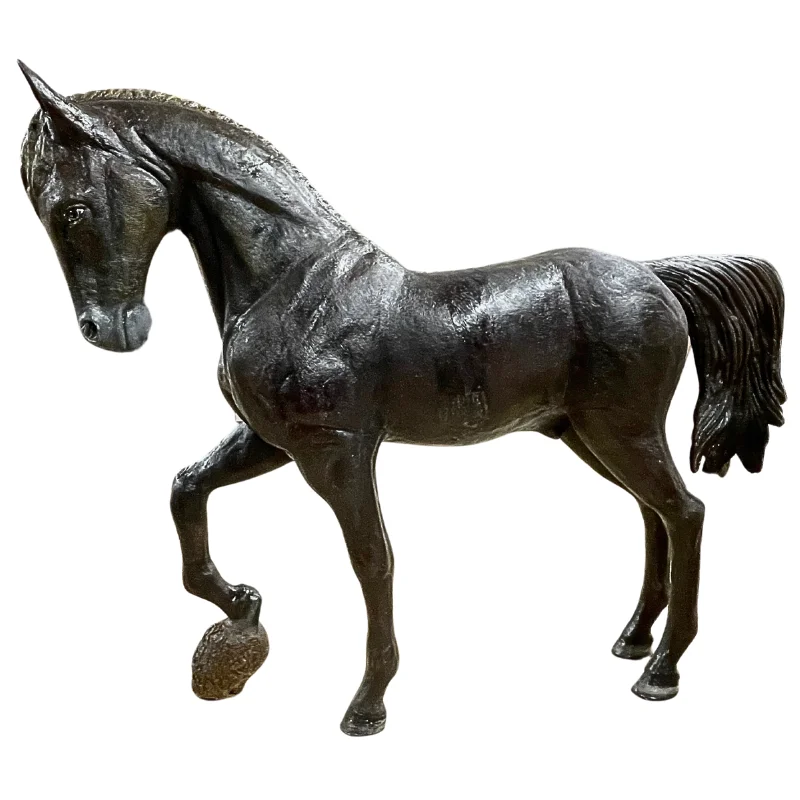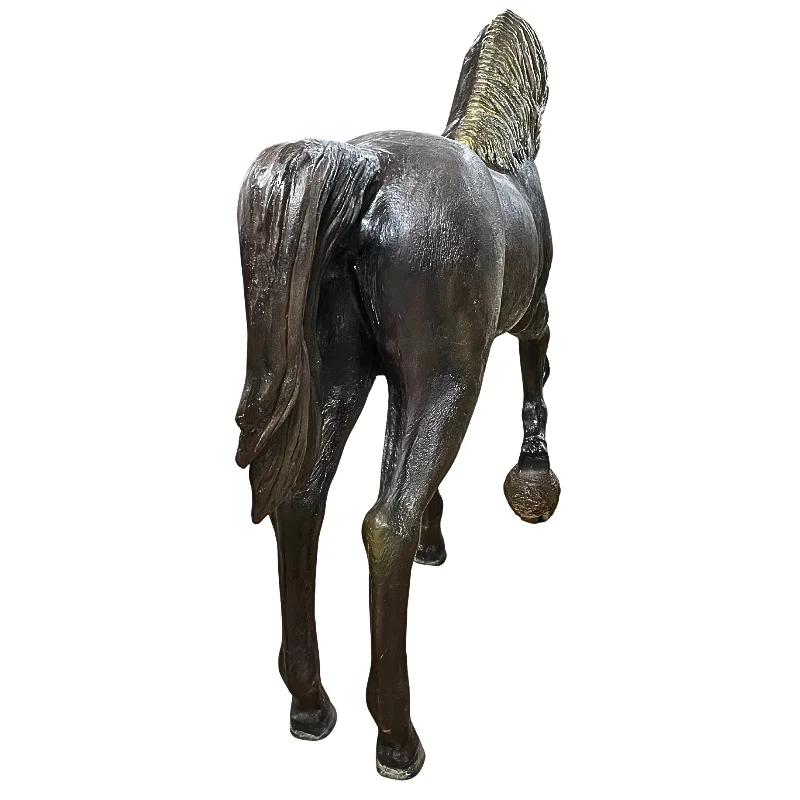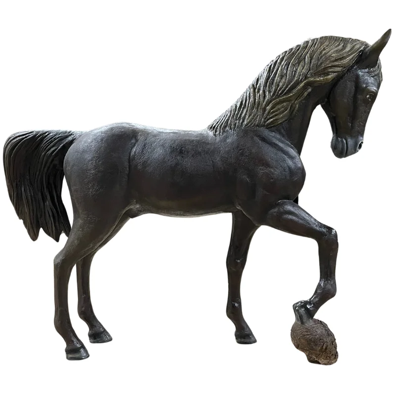 Impresiona a tus visitantes con esta escultura de caballo negro de 7 pies de altura, elaborada en fibra de vidrio y yeso (plaster). Su imponente tamaño y acabado brillante la convierten en una pieza visualmente poderosa que añade carácter y elegancia a cualquier espacio.