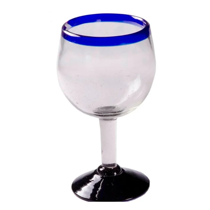 Copa para coctel de camaron, hecha de vidrio soplado, con posta color azul sin logotipo.