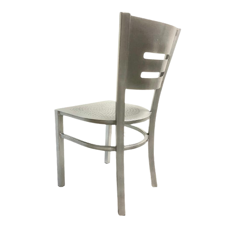 Silla de diseño minimalista con una imagen muy agradable y actual. Estructura fabricada en acero calibre 18. Acabado con pintura en polvo horneada. Asiento y respaldo con corte a láser en acero. Usted tiene la opción de elegir el estilo de corte en el respaldo, el logo o cualquier idea que desee incorporar. Ideal para áreas exteriores, con una altura del piso al asiento de 17".