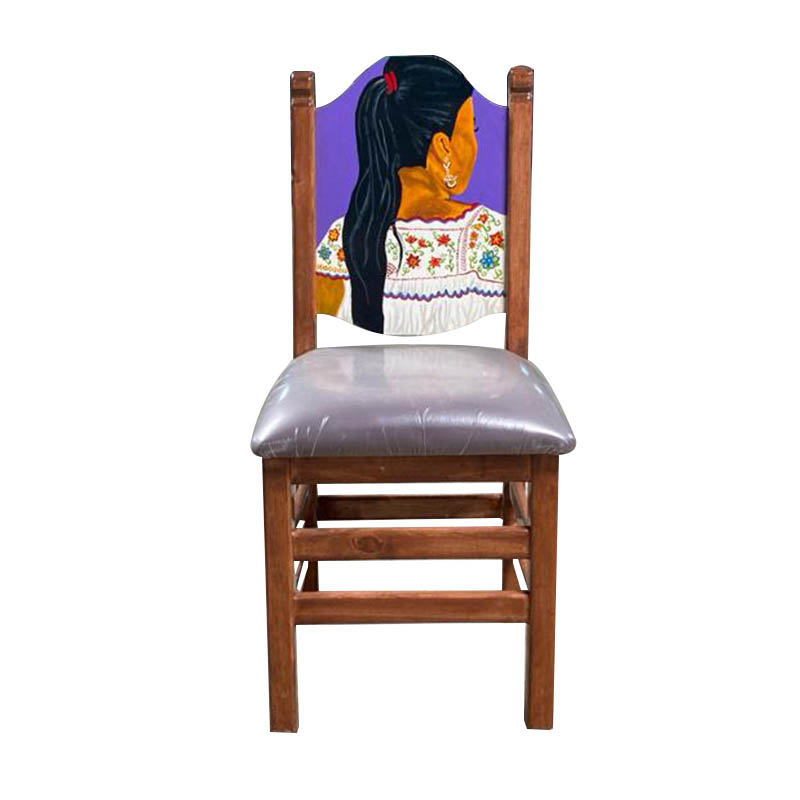 Ofrecemos una amplia variedad de diseños entre los cuales puede elegir. Sillas artesanales con imágenes en el respaldo, según el tema de interés, que pueden ser pintadas a mano por artesanos mexicanos. Si lo desea, podemos personalizar las sillas con el nombre de su restaurante. Además, ofrecemos diversas opciones de tonos para elegir, tanto en el color de la madera como en el del vinil, o incluso sin vinil.