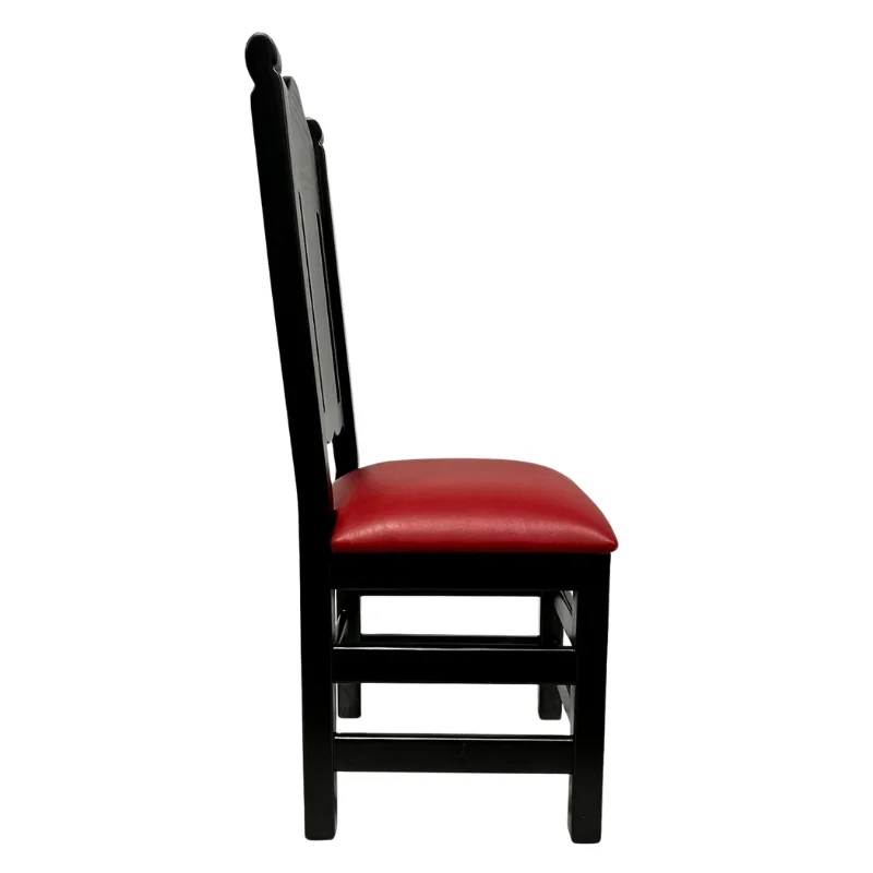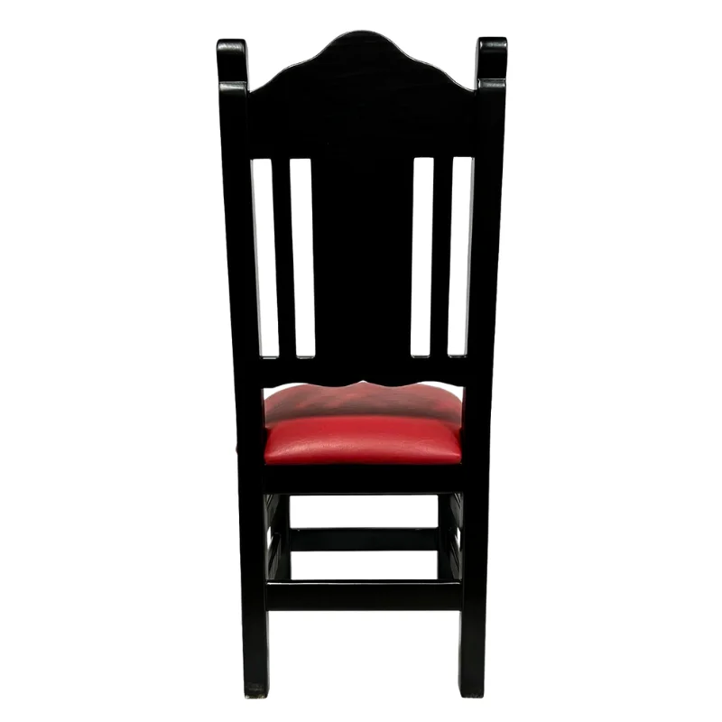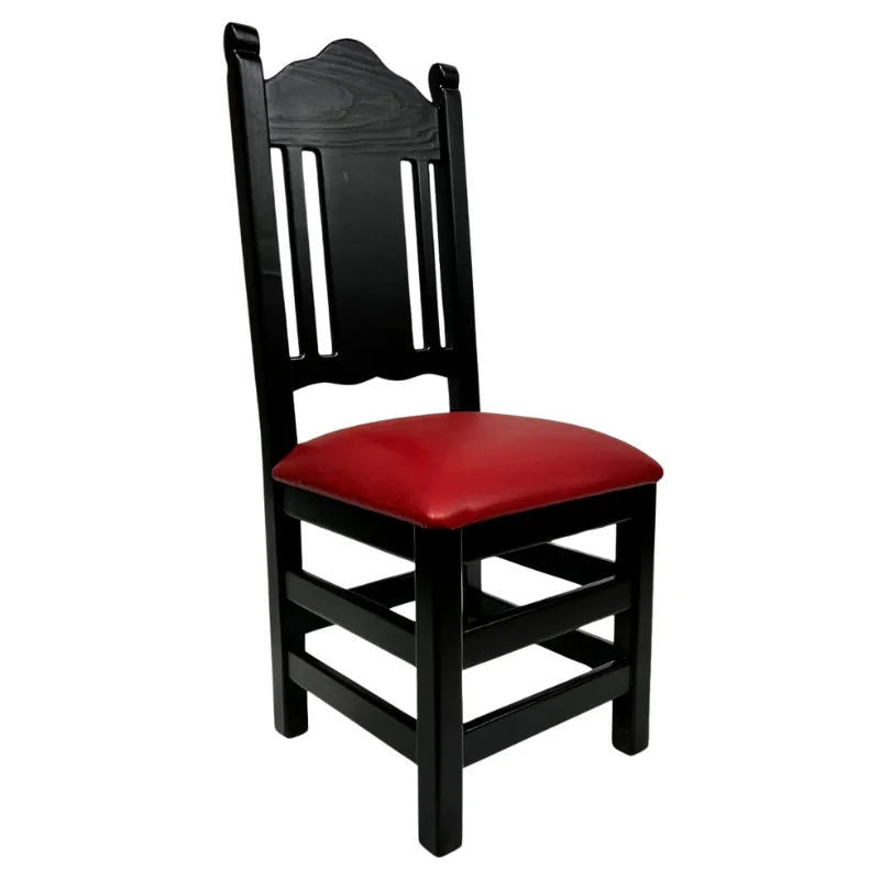 Silla rustisca de madera color choco, estilo tradicional  y vinil color burgundy.