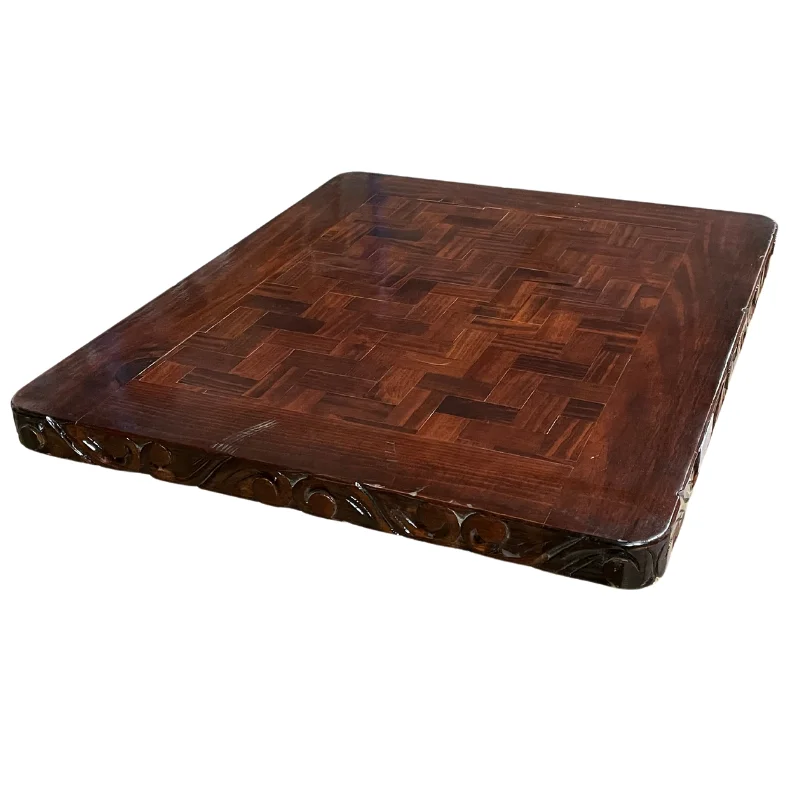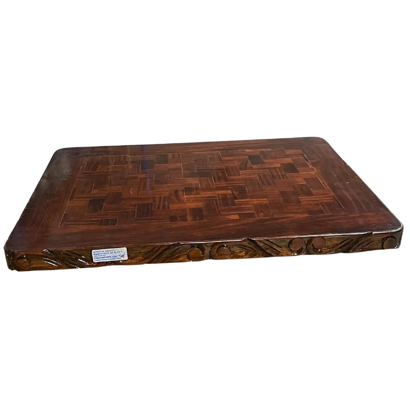 Tapa de mesa de madera rustica, diseñada para brindar la apariencia elegante sin sacrificar la calidez y resistencia de la madera. Su superficie cuenta con un acabado brillante ideal para dar un toque sofisticado a su restaurante, café o bar. Esta tapa tiene diseño grabado en el borde.